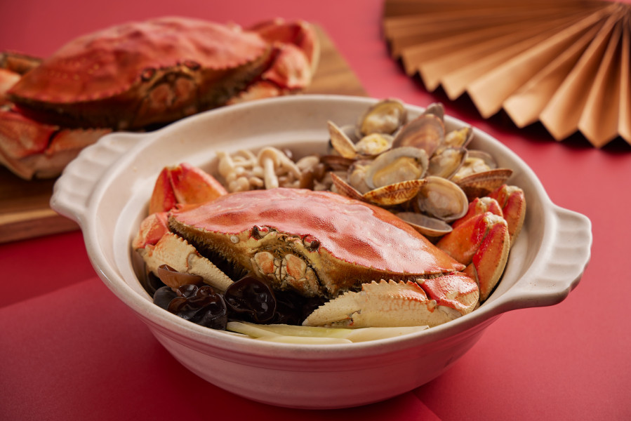 「花甲黃金蟹什菜煲」,以雞骨、豚骨、草蝦殼及黑胡椒粒費心熬煮的湯底,輕啜一口,微辣的絕佳滋味令人舒暢,迷人的胡椒香氣輕躍舌尖。接著細細品嘗豐富海鮮與時蔬,包含肉質肥彈的黃金蟹肉、鮮嫩海瓜子、鴻喜菇、川耳及西芹等,適合與家人朋友一起大快朵頤,以味蕾體驗秋旬風情。