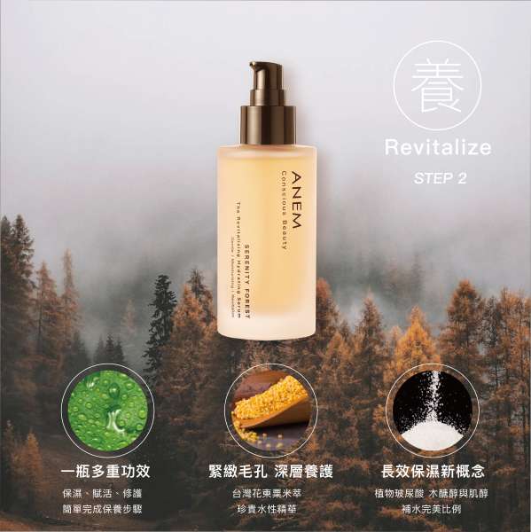【ANEM 水潤活粹 精華露】保濕×舒緩×賦活,再現緊緻!在地成分台灣原生種-栗米精粹,採綠色萃取法,不使用溶劑,過濾出珍貴水性成分,輕盈質地能溫柔深層的被肌膚吸收,補充肌膚所需的營養成分。特別添加長效保濕新概念-海藻糖丶木糖醇,優化肌膚的水分儲備和循環,給肌膚剛剛好的呵護。
