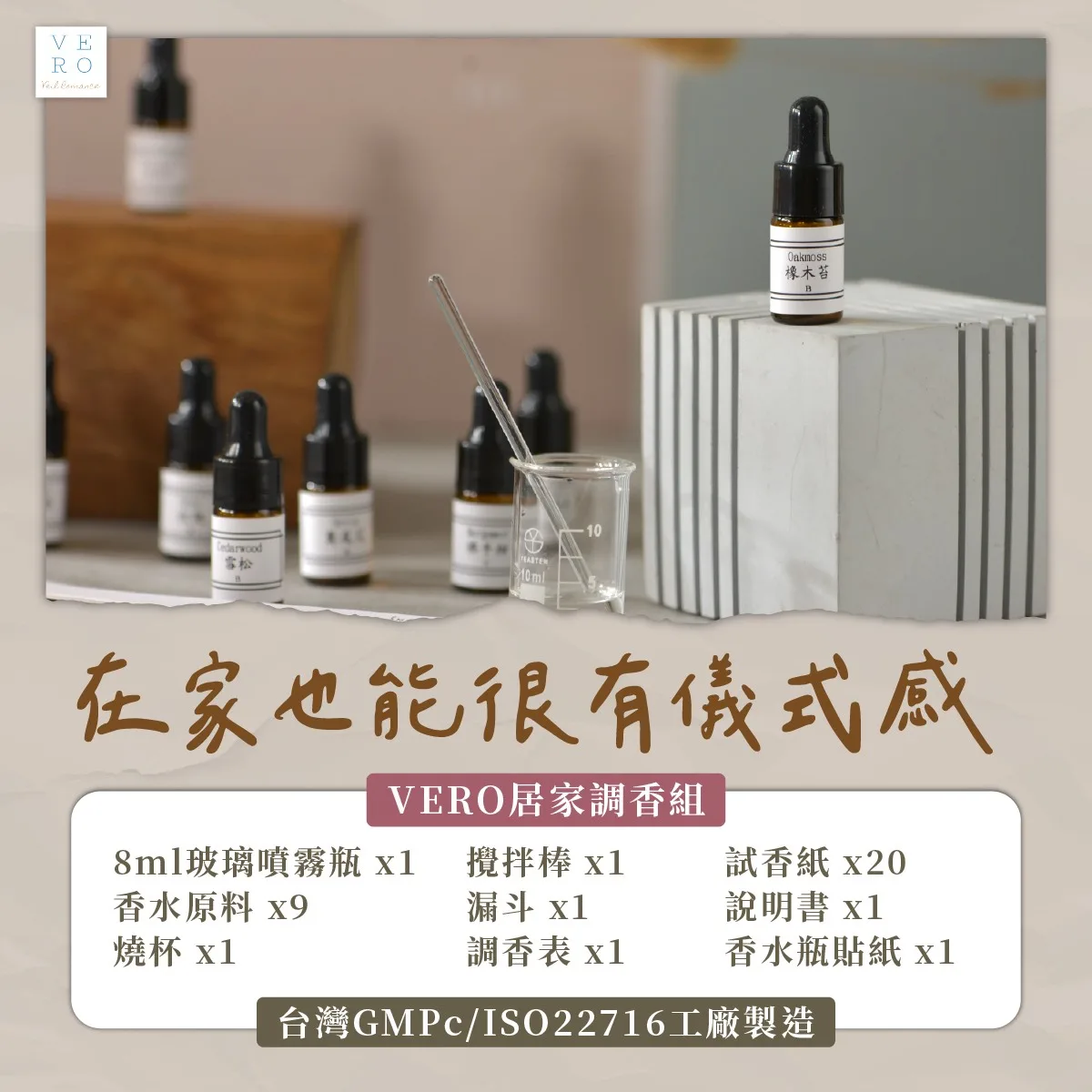 台灣 GMPc 與 ISO22716 認證工廠製造,品質安心|承襲 VERO 課程精華,將專業體驗延伸至生活