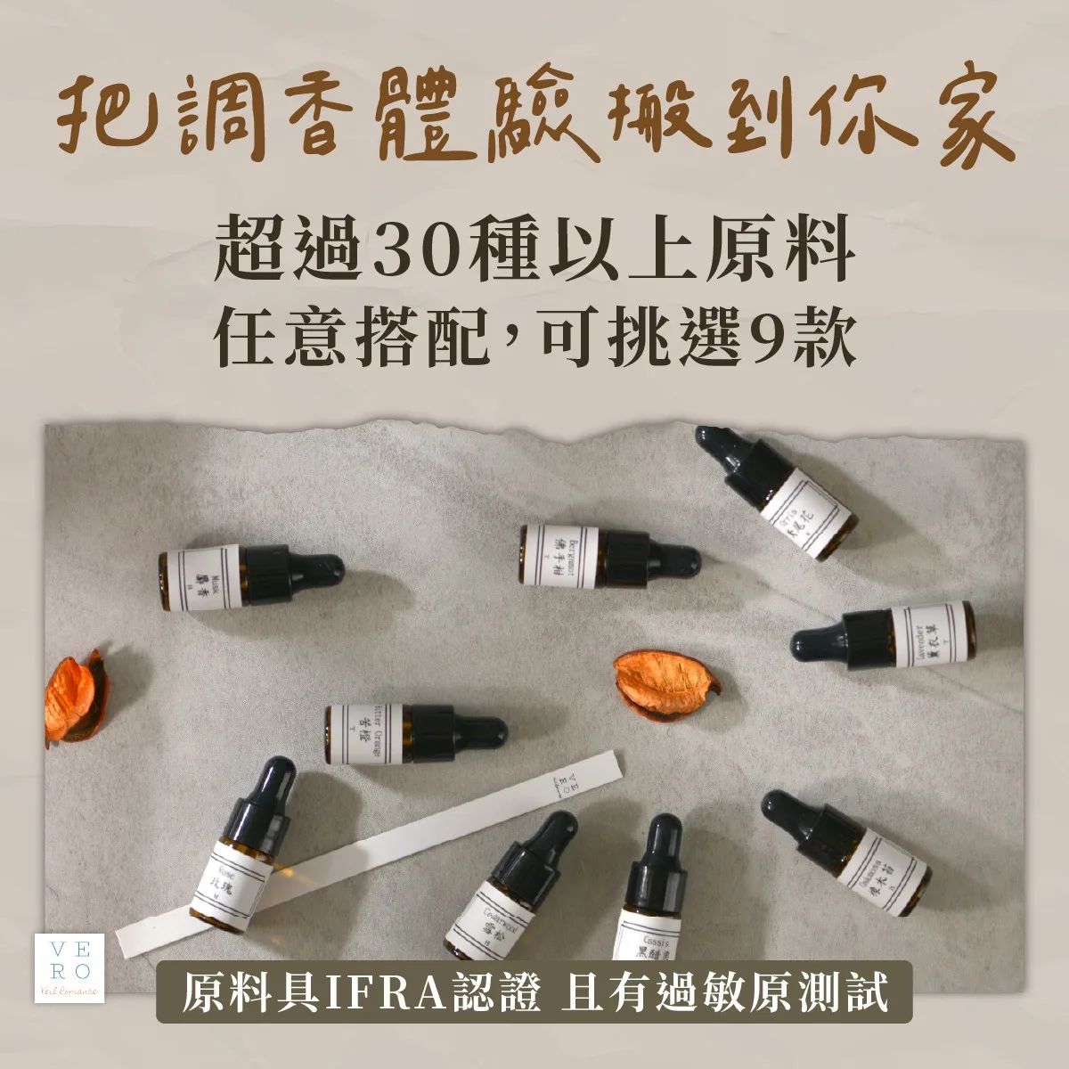原料具 IFRA 認證,並通過過敏原測試|超過 30 種以上香氛原料可任意搭配,並可挑選 9 款