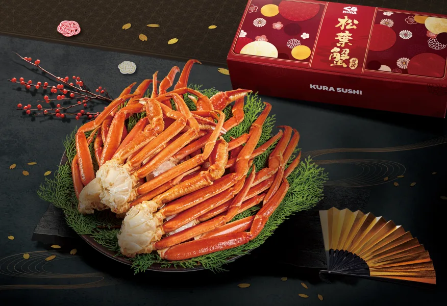 日本新年祈願美食「螃蟹御節料理」,象徵吃下新年的祝福。迎接農曆春節,藏壽司要讓消費者感受日本新年風情,引進有日本頭號冬之味覺美名的「松葉蟹」,推出「嚴選豪華松葉蟹」禮盒,極鮮鎖甜來台,首賣年節禮盒。更加碼祭出限時預購早鳥9折價,冷凍宅配免運費,喜歡品蟹的老饕們,品美味又能接住一年好運。