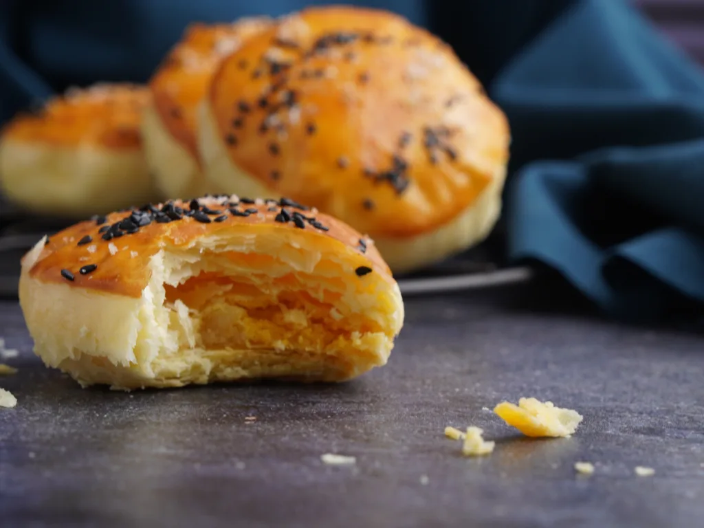 門市明星商品「留酥燒」以創新手法重新演繹台灣經典點心,將甜燒餅的酥、太陽餅的微甜與奶油酥餅的香巧妙融合,烘烤出金黃耀眼的澎潤千層酥皮,入口瞬間層次綻放、香氣四溢,輕甜內餡更添溫潤食感。