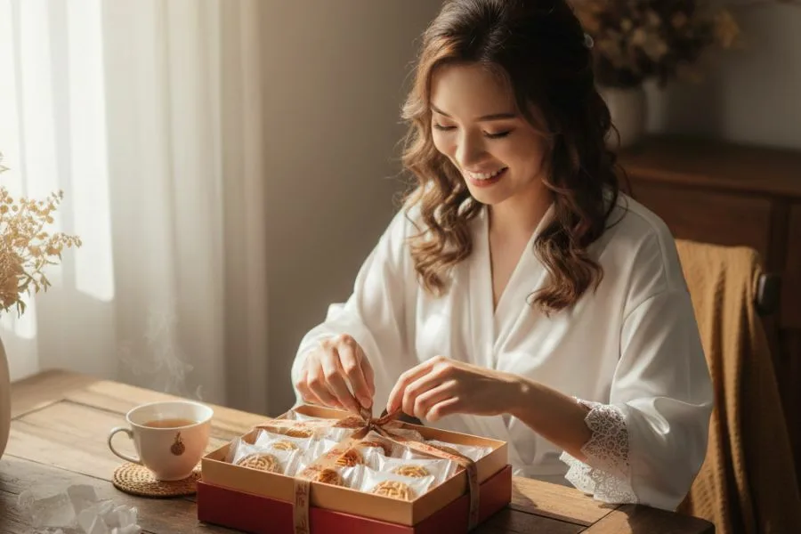 說到底,無論是遵循古法那份沉甸甸的傳統漢餅,還是如同珠寶盒般精緻的現代手工點心,喜餅始終是愛情故事的實體化。它是新人在繁瑣的備婚過程中,親自試吃、反覆討論後,為親友挑選的一份心意。當賓客在某個靜謐的午後,泡上一杯熱茶,解開喜餅盒上的緞帶時,他們品嚐到的不僅是麵粉與奶油的香氣,更是這對新人「娓娓道禮」、與世界分享愛情的溫暖餘韻。